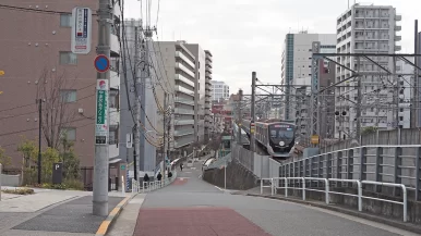 サントリー金麦CM『彼のいつもの帰り道』篇(2026年)の冒頭2秒、電車沿いの坂道ロケ地を特定!不動前駅近くの目黒線沿いにある「無名坂」を坂道探検家が現地調査。竹野内豊さんが歩いた風景を詳しく解説します。